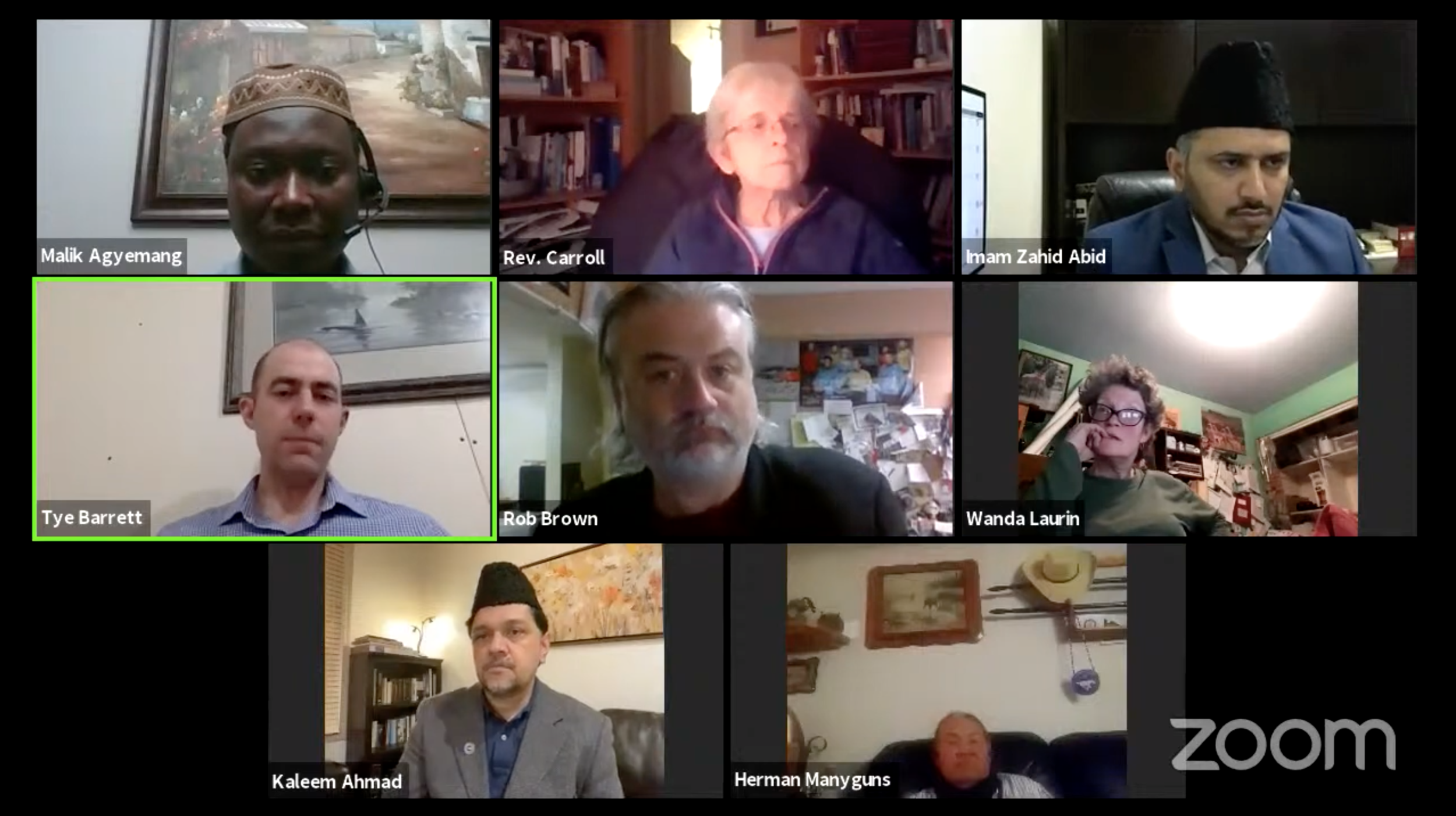 Panelists included local leaders from several faith traditions in the community, including Baptist Christian Rev. Nathan Friedt, Blackfoot Elder Herman Manyguns, LDS Christian Tye Barret, Muslim Imam Zahid Abid and United Church Rev. Marilyn Carroll.