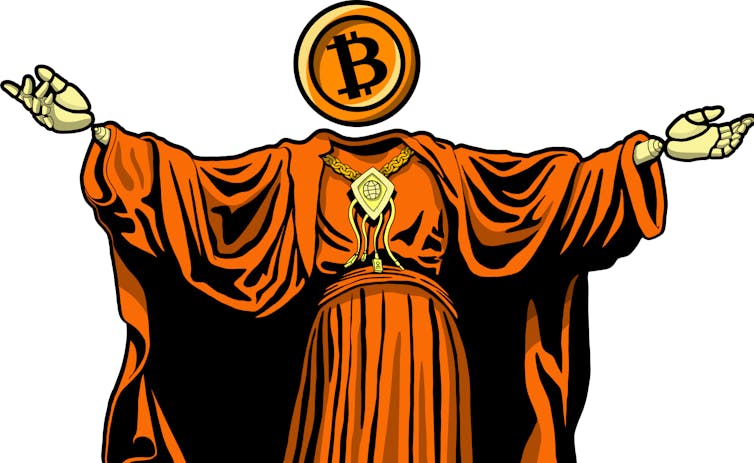 Several commentators have noted that Bitcoin inventor Satoshi Nakamoto resembles a sort of prophet. Nakamoto’s true identity – or whether Nakamoto is actually a team of people – remains a mystery. But the intrigue surrounding this figure is a source of charisma with consequences for bitcoin’s economic value. Many who invest in bitcoin do so in part because they regard Nakamoto as a genius and an economic rebel. In Budapest, artists even erected a bronze statue as a tribute to Nakamoto.