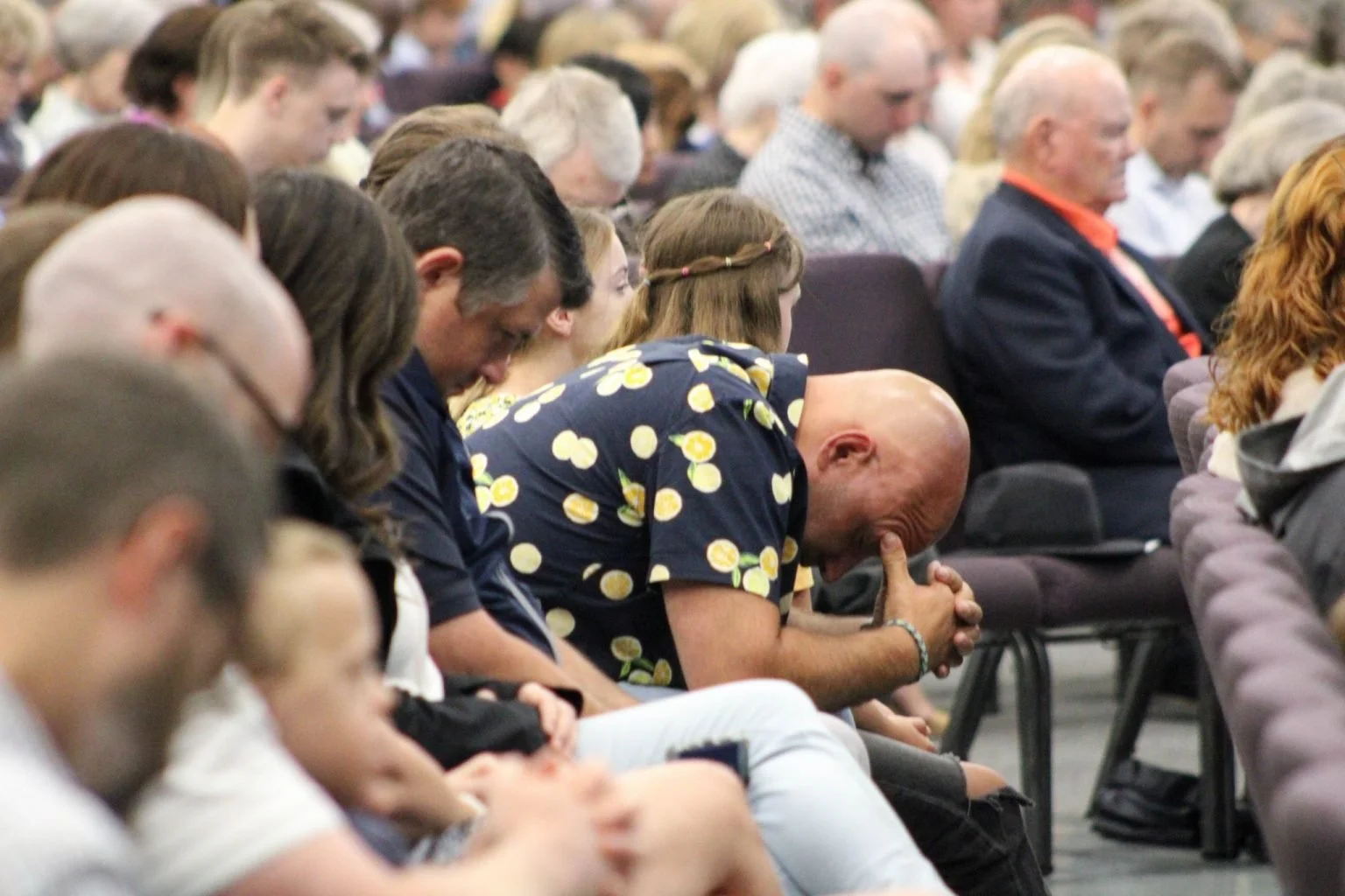 Members of The Park Church of Christ in Tulsa, Oklahoma, pray Sunday after a mass shooting claimed four lives in the state’s second-largest city. Photo by Gabriel Grant Huff