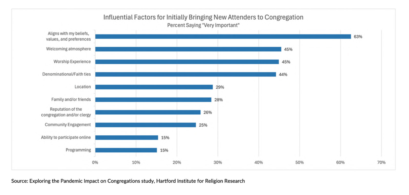 In that same chart, 45% percent of the survey participants stressed that they were seeking a “welcoming atmosphere” or what they considered an excellent “worship experience.”