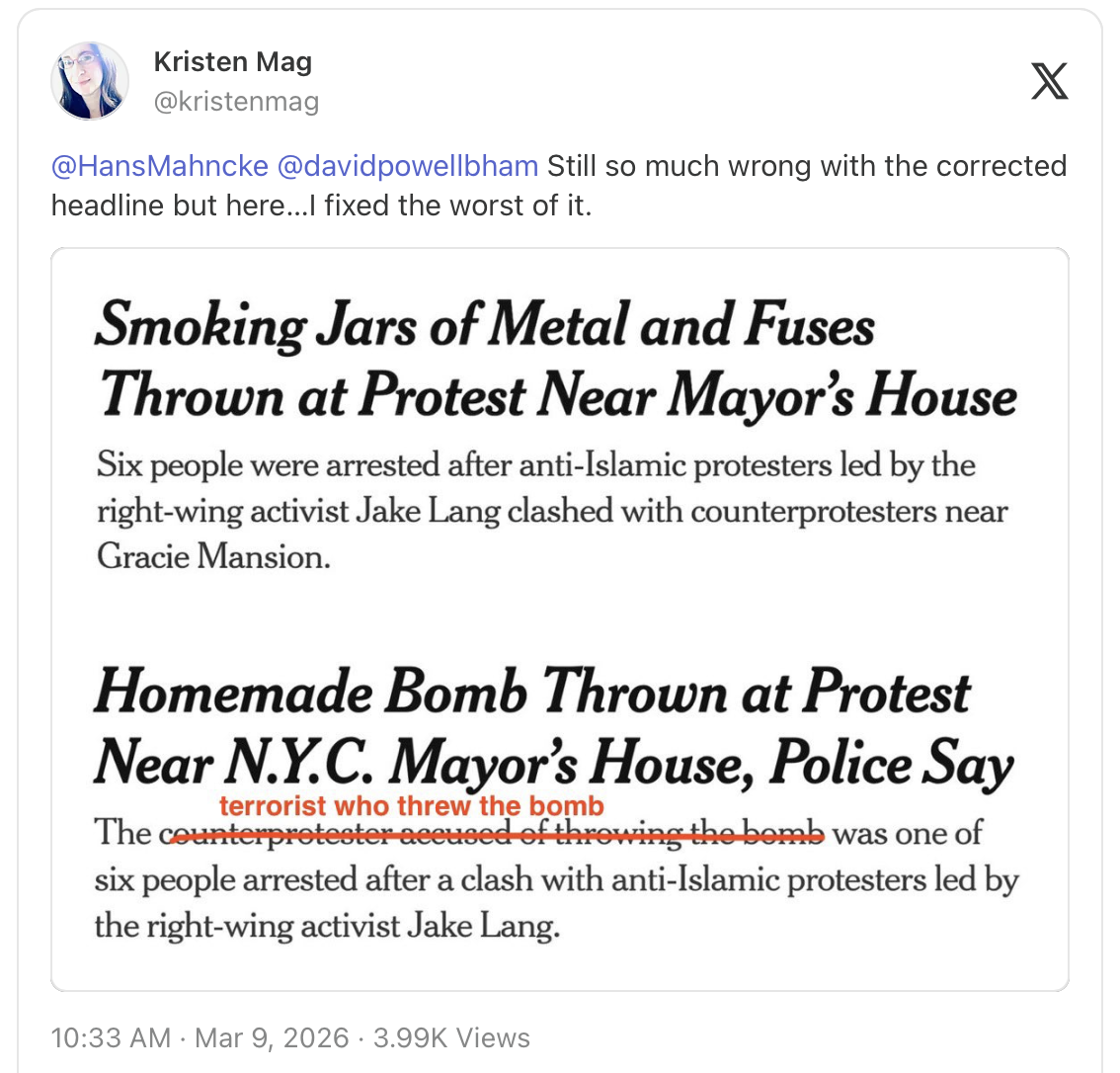 The Times editors made a few — repeat, “a few” — improvements with the revised headline for this important story: