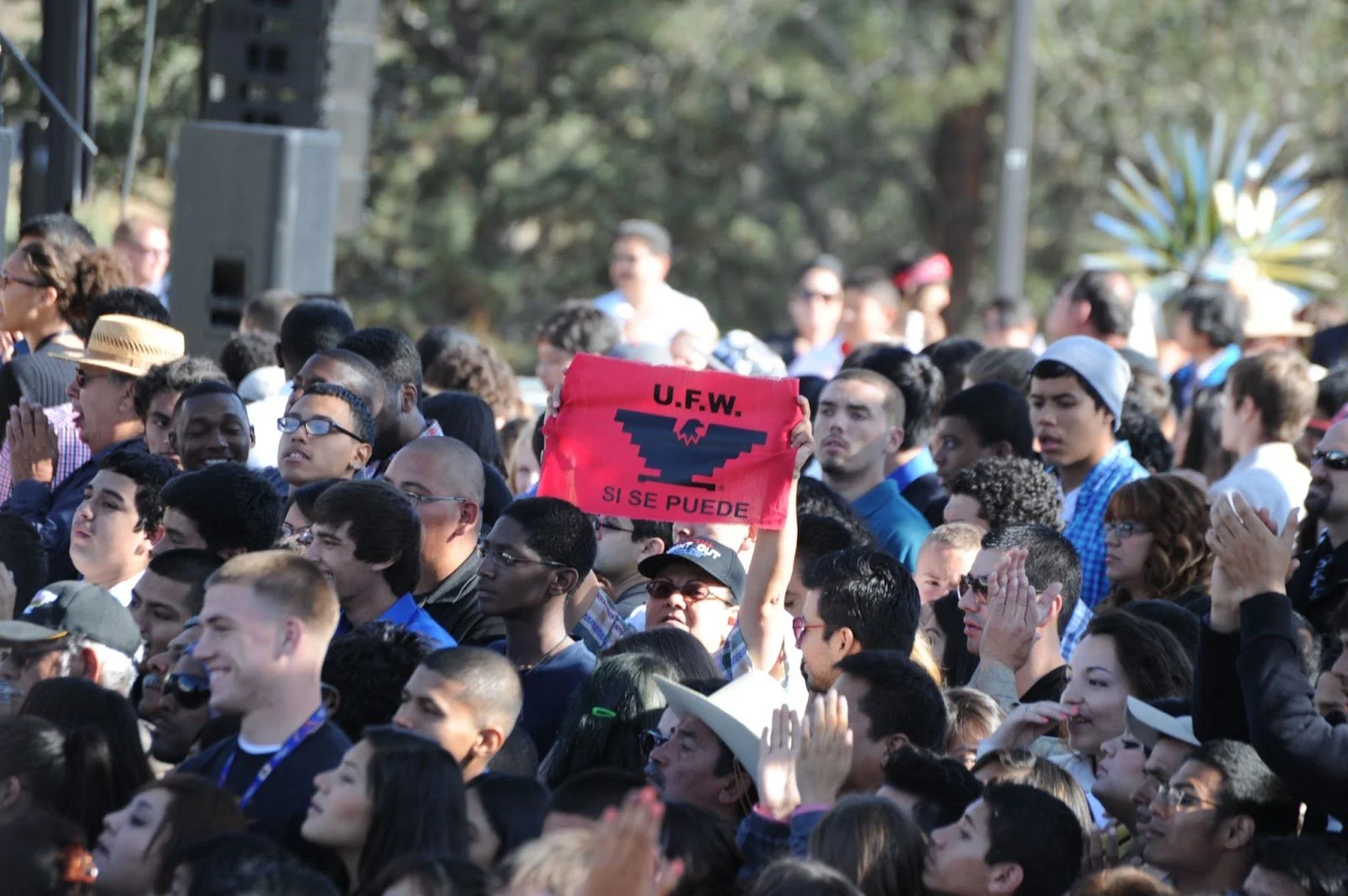 The flag of the United Farm Workers of America — featuring the Aztec eagle — is decorated with Dolores Huerta’s iconic phrase: “Sí se puede.” (Photo courtesy of The National Archives)