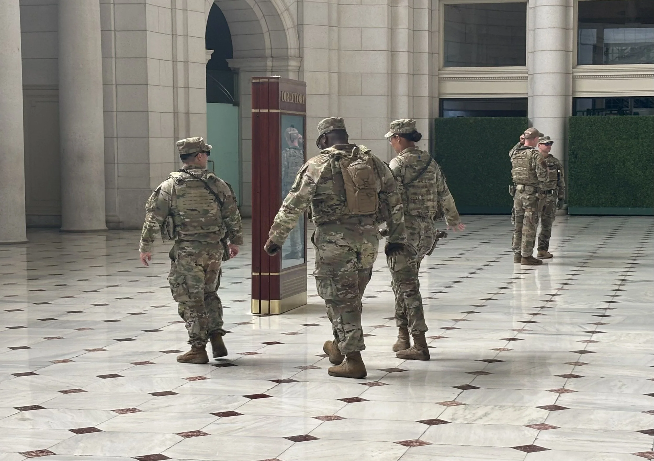 National Guardsmen patrol Washington, D.C.’s Union Station during a recent morning commute. (Photo by Clemente Lisi)